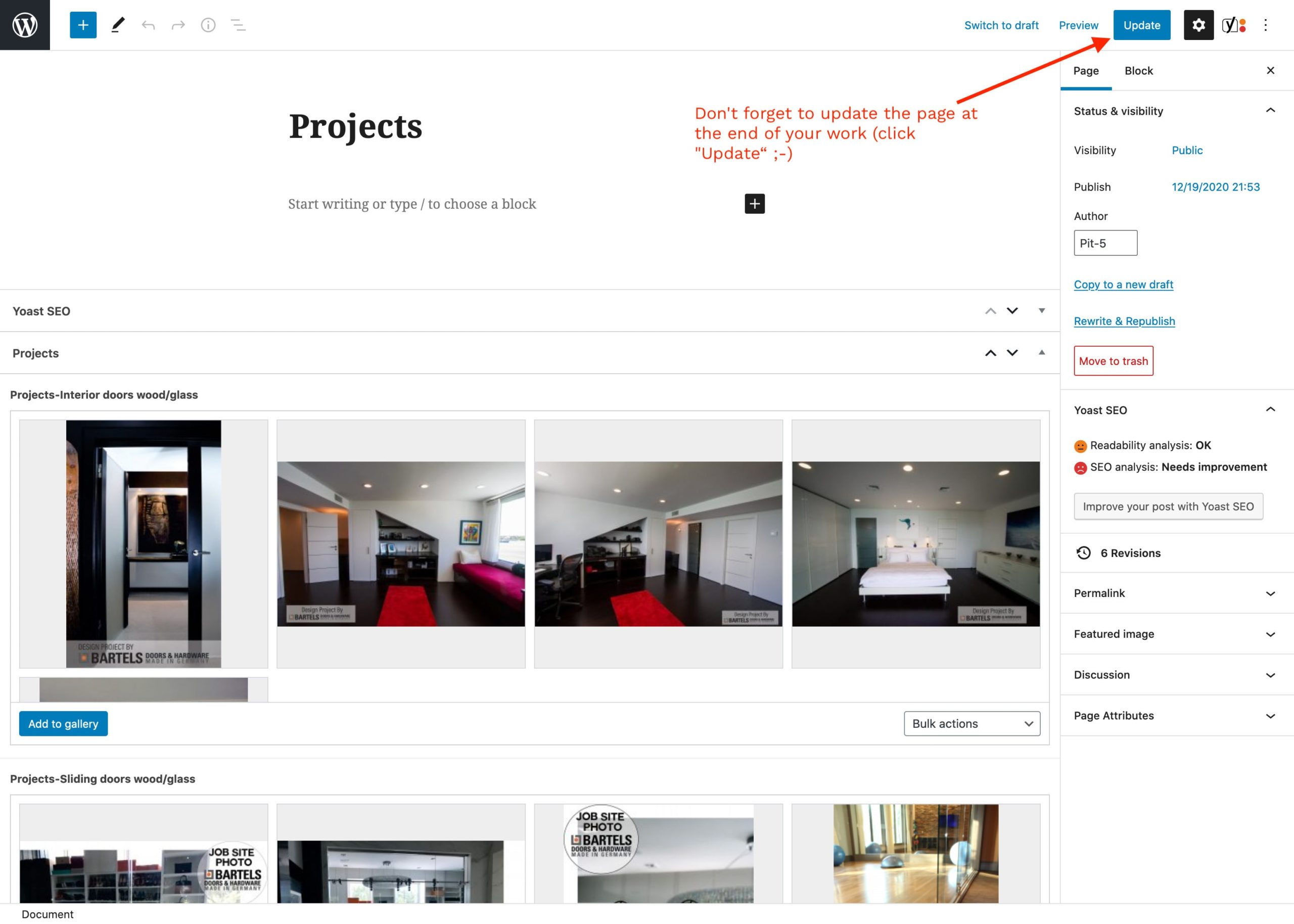 Don't forget to update the page at the end of your work (click "Update")