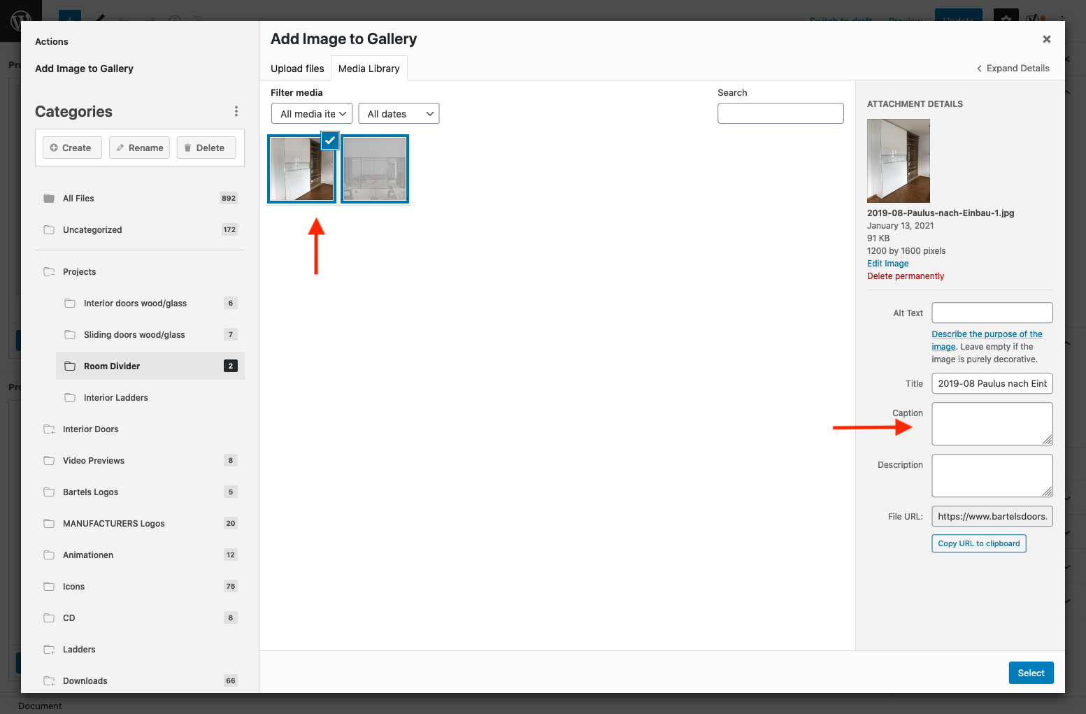 • Finally you have to click on "Select" at the bottom right to add the images to the gallery.